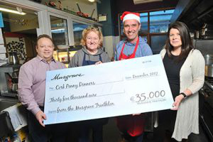 Chef Kevin Dundon Cooks for Food Charity's Volunteers Pictured: Brendan Fitzgerald from Musgrave, Caitriona Twomey from Cork Penny Dinners, celebrity chef