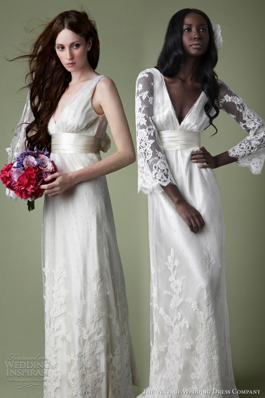 We love the latest wedding dresses from The Vintage Wedding Dress Company Decades bridal collection. As with the previous collections, some of these gowns can be customized for a totally different look - a fine example is the gown above, a 1900s Victorian style cream lace wedding dress, shown with and without long sleeves.